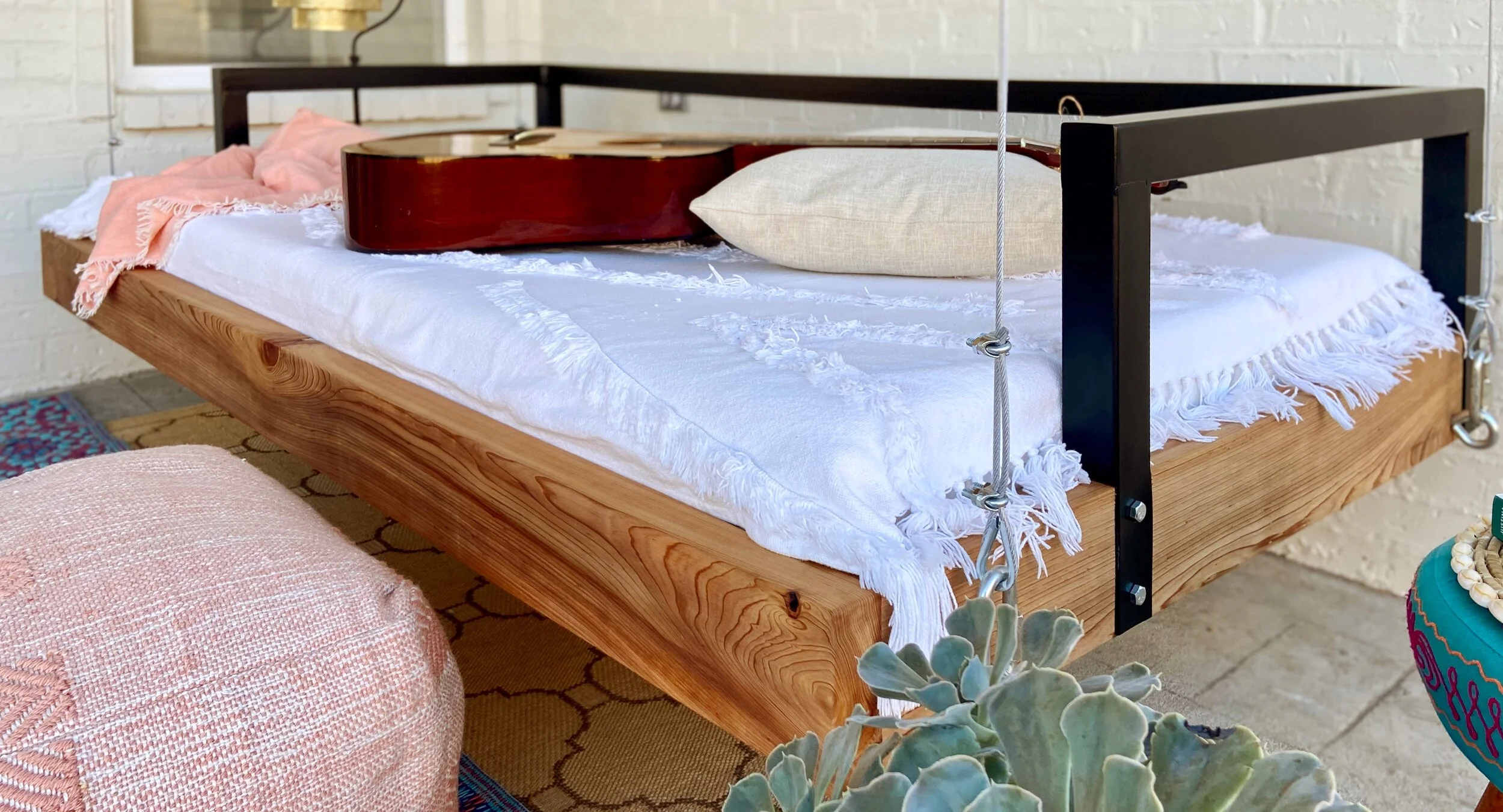 This step is to ensure your space can accommodate the swing bed you’d like, as well as a chance for you to view our Cypress wood and finish samples and visualize them in your unique space. We’ll also bring our Sunbrella fabric samples in case you’re interested in a custom cushion & mattress cover package.